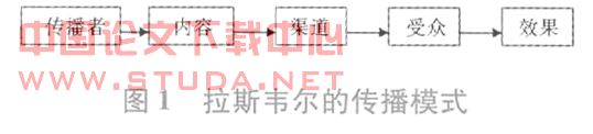1948年,美国传播学家拉斯维尔在《传播在社会中的结构和功能》一文中,第一次比较详细、地把传播过程分解为5个基本要素,即“5W模式”,主要包括:谁(Who);说什么(says what);通过什么渠道(In what channel);对谁(To whom);取得什么效果(With what effects)。如图1所示: