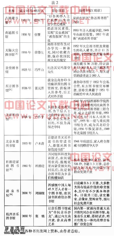 2.2 国内主要个人捐助图书馆列表(见表2)