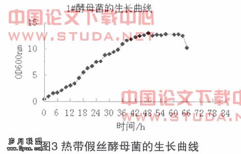 由图3可知,1号菌株在2h之后进入对数生长期,在48h的时候OD值达到最大,然后进入平稳期。
