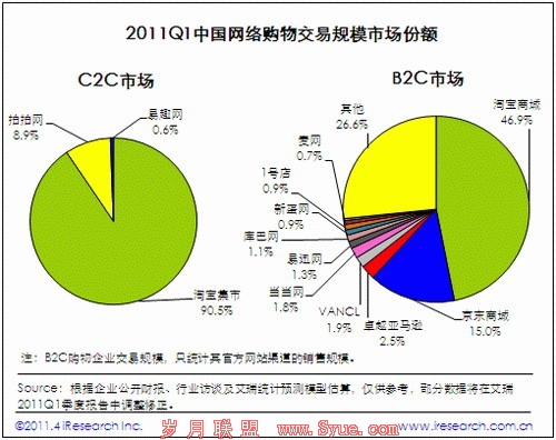 艾瑞数据显示,2011年第一季度C2C网络购物市场上,超九成的交易来自淘宝 (TechWeb配图)