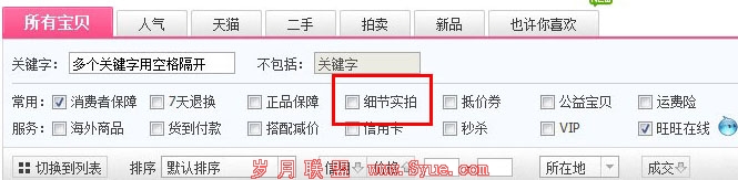 这个是淘宝女装类目商品展示页的筛选框,问题就出在这里。大概是从去年10月份开始,淘宝女装类目默认勾选细节实拍,也就是只有通过细节认证的商品,才在淘宝女装类目展现。没通过女装细节实拍认证的商品,除非顾客自己手动把细节认证的勾选去掉,不然得不到展现。