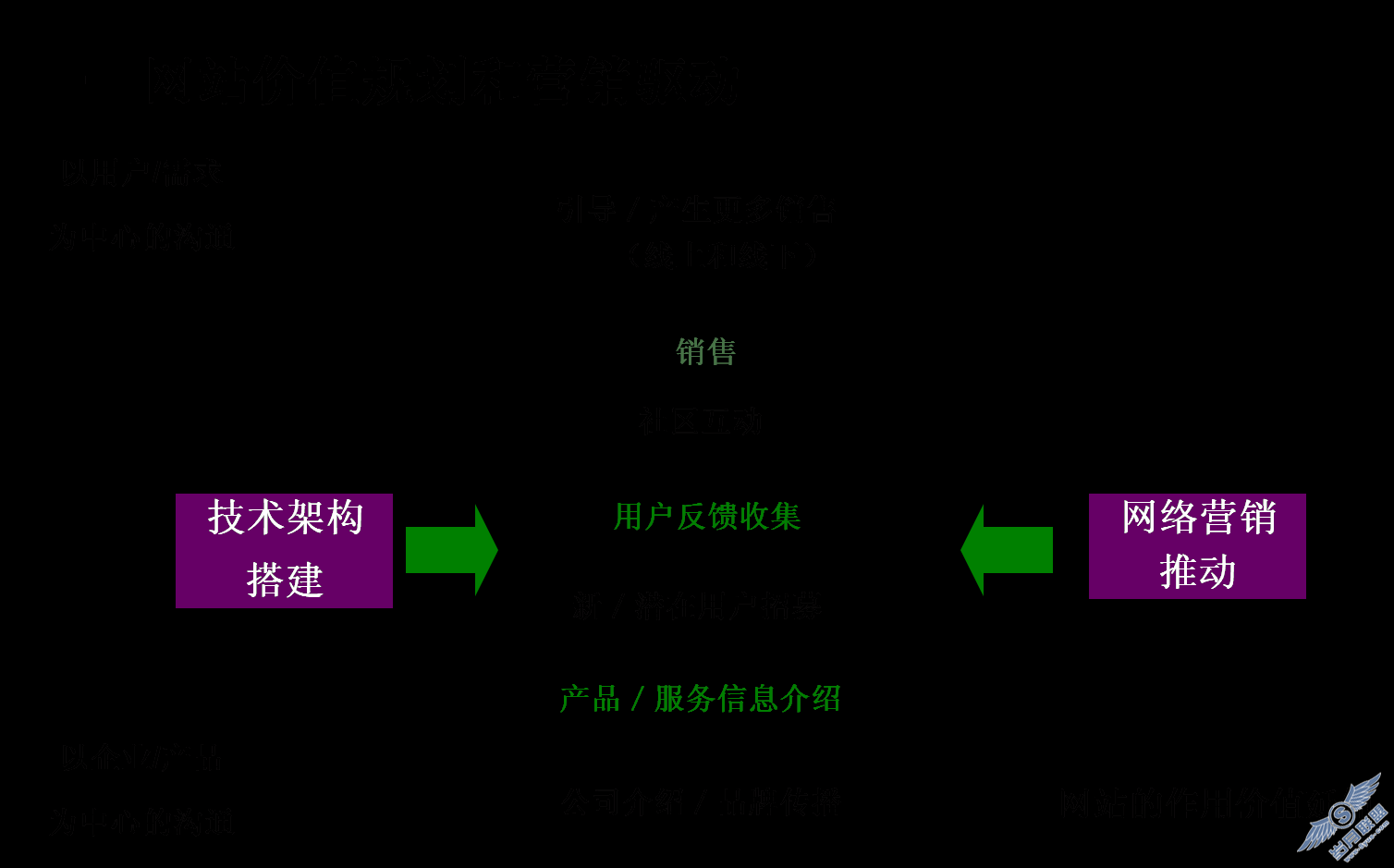 主流的企业对网站价值和功能的理解历经“名片”,“产品手册”和“联系用户”等初级阶段后,随着对网络营销的重视,现在已经逐步提升理解到“用户互动需求收集”以及“销售促进”等全方位,全功能的网站建设需要了。这个模型比较容易理解,我想指出的一些容易进入的误区: