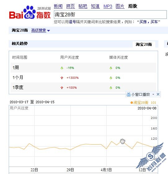 以前淘宝28街被《青年时报》《信息时报》《温州商报》这些媒体报道的时候,每天搜索“淘宝28街”进入网站的非常多,但是也没有出现百度指数数据,我觉得一可能是这种高不像某些热门事件那样一样上万的人在搜索,而且稳定性也会太差,报道热门过后,搜索的人会逐渐减少,而现在稳住了,是因为现在确实每天都这么多人在搜索,而且非常稳定,所以才会在百度指数显示了出来。我分析了一下可能是以下几个原因导致的: