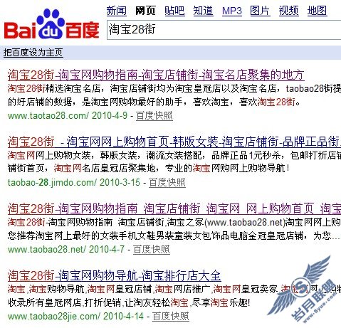 因为之前分享过一次淘宝28街的静态版源码,网上出现了很多的淘宝28街网站,但是没想到的事,站长们连网站名都不改,导致网上出现了很多叫淘宝28街的网站,所以这让我也十分的郁闷,因为很多广告商后来和我说,好几次差点认错了。还好没有听说过利益损害的广告商,后来也停止了淘宝28街源码的下载,就源码的事,还要好好斟酌一下,重新处理之后再提供大家下载,因为我没想到大家的热情那么高,感觉这套源码简单的不能再简单了。正是因为之前山寨28街的普遍传播,我想这对于用户搜索淘宝28街去寻找网站数量也是大大刺激了。