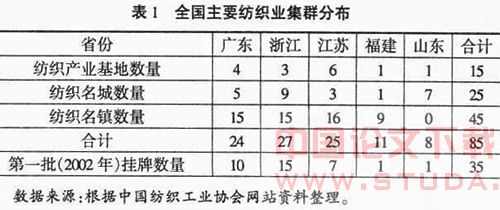 从中国目前的纺织业集群发展状况来看,以江浙为主的长江三角洲和以广东为主的珠江三角洲地区纺织业集群都显示出极大的竞争优势,而山东省内日益兴起的纺织业集群正在成为环渤海三角洲地区纺织业发展的重要支撑点。