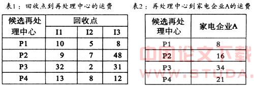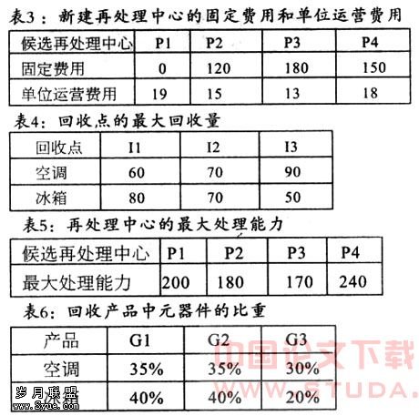 (2)回收中心和再处理中心的候选位置和数目是确定的