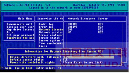 由于正式使用Netware Lite For DOS之前,总需要先安装好相关的网络组件(包含在startnet.bat中)及登录(用默认的超级用户,密码为空,登录格式为:net login supervisor),所以为了方便起见,将下面两条命令加入到autoexec.bat文件末尾去: