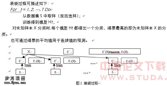 2.3 装袋(Bagging)学习算法装袋(Bagging)学习算法的基本思想是:(1)给定一个弱学习算法,和一个训练集;(2)单个弱学习算法准确率不高;(3)将该学习算法使用多次,得出预测函数序列,进行投票;(4)最后结果准确率将得到提高.