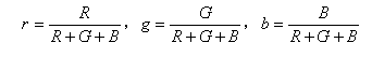 在RGB颜色坐标系统中,如果不考虑光照强度,而只对色度感兴趣,则只要知道R、G、B的相对值即可。相对值 r、g、b称为色度坐标,其计算公式如下: