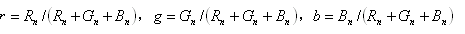 n分别是规范到0~l之间的RGB值,其计算公式如下: