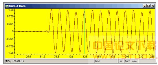 图2(b)滤波后的数据(Output) 将FIR滤波的入口数据地址改为外部I/O空间或McBSP口的读写数据地址,或数据空间内建缓冲地址;将FIR滤波的结果数据地址改为外部I/O空间或McBSP口的输出数据地址,或数据空间内建缓冲地址,则完成了基于C54xDSP的实时数据FIR滤波程序。:[1] 程佩青.数字信号处理教程[M].北京:清华大学出版社 1999年[2] 孙宗瀛,谢鸿林.TMS320C5xDSP原理设计与应用[M].北京:清华大学出版社.2002年[3] 陈亚勇等 编著.MATLAB信号处理详解[M].北京:人民邮电出版社.2001年[4] Texas Instruments.TMS320C54x Assembly Language Tools User’s Guide[5] Texas Instruments.TMS320C54x DSP Programmer’s Guide