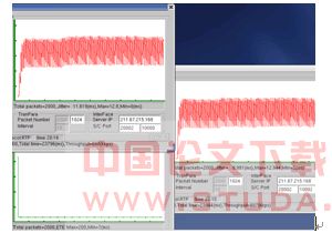 3.2 线程的调度控制 线程间通过互斥锁,实现循环控制,即在线程处理视频数据前通过互斥变量、信号灯加锁,主要代码如下:sem_wait(); pthread_mutex_lock(); …… thread_next_flag=true;//设置下一个可执行线程标志 pthread_mutex_unlock(); sem_post(); 为了实现有效的服务,需要保证视频数据流的传输具有相对的数据完整性。接收端常根据数据的到达情况通过RTP/RTCP协议的信息反馈,为服务器提供数据包接收情况的质量统计反馈信息和QoS检测的资料;对于接收端而言,数据的存放需要占用一定数量的缓存,以承受带宽波动,并在传输中增加一定冗余信息来重建丢失或受损的数据,减少数据重传。 按照上述策略,在Linux 9.0系统下编程实现了数据的传输,服务器的配置赛扬为2.0GHz,网卡为10/100M自适应。接收端为赛扬1.0GHz,网卡同样为10/100M,通过交换机互联。服务器预创建5个传输服务线程,图中为两个接收端的数据接收延迟情况,均传送2000个数据包,从统计的结果图来看,除了起始端出现较大的延迟外,延迟抖动均没有过大的变化。但在没有使用本文提出的调度控制的情况下,常常出现时延的急剧变化,即某一数据流出现了较大时延。因此,本文的并发传输调度达到了使用要求,效果比较令人满意。