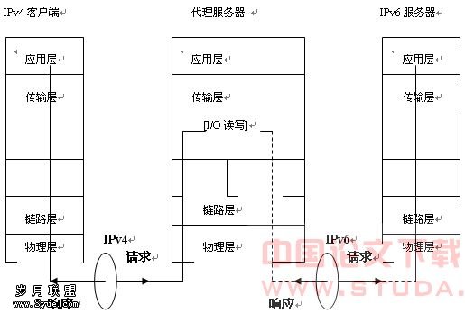 | 图2 IPv4应用程序通过代理访问IPv6服务器 |