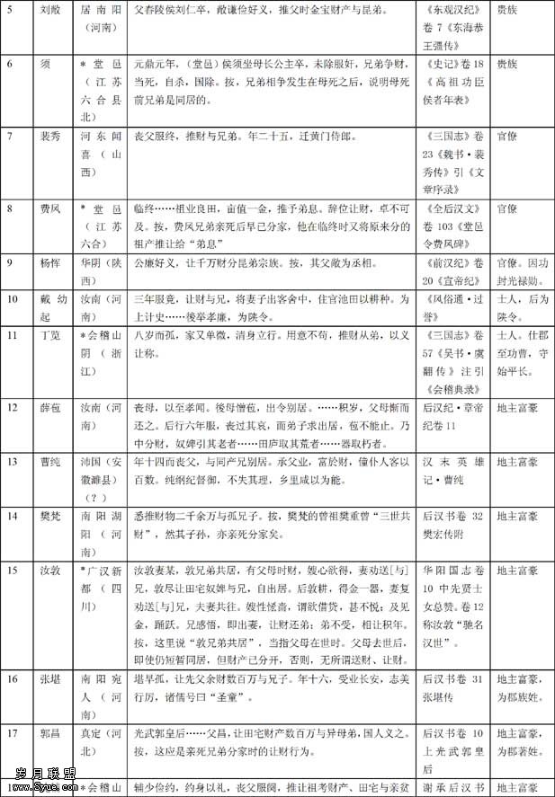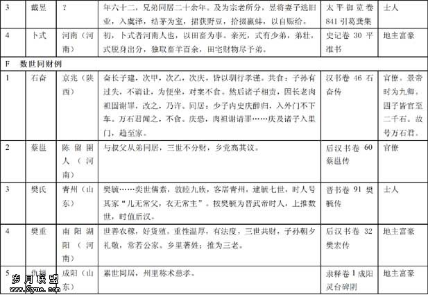 另一种是按实行兄弟同居者的身份分为贵族、官僚、士人、地主富豪、一般平民5类。其比例与实际生活有一致处,也有不一致处,需要加以说明。