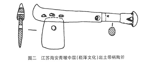 新石器时代石制生产工具中的石斧(也有称之为石铲),具有使用广、制作精、形制简单而稳定的特点。基本形制是扁平长方形,双面刃呈直、弧线形,通体磨光。斧体有从厚向薄变化的趋势,出土时在斧头顶部常见到凹槽、横脊、段、肩、孔这些特征,全都是为了安装把柄而设置的。石器装柄是一项重要的技术创造,但人类取得这项创造并不简单。前苏联社会学家普列汉诺夫指出“石斧最初是没有斧柄的。史前考古学很确凿地证明。斧柄对原始人类来说是一个相当复杂而又困难的发明”(2)。
