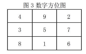 这1—9九个数字在九个格内的排列位置表现了与“河图”完全一致的神秘观念。就是在宫内横、竖、斜各行加起来总和都是15。即: