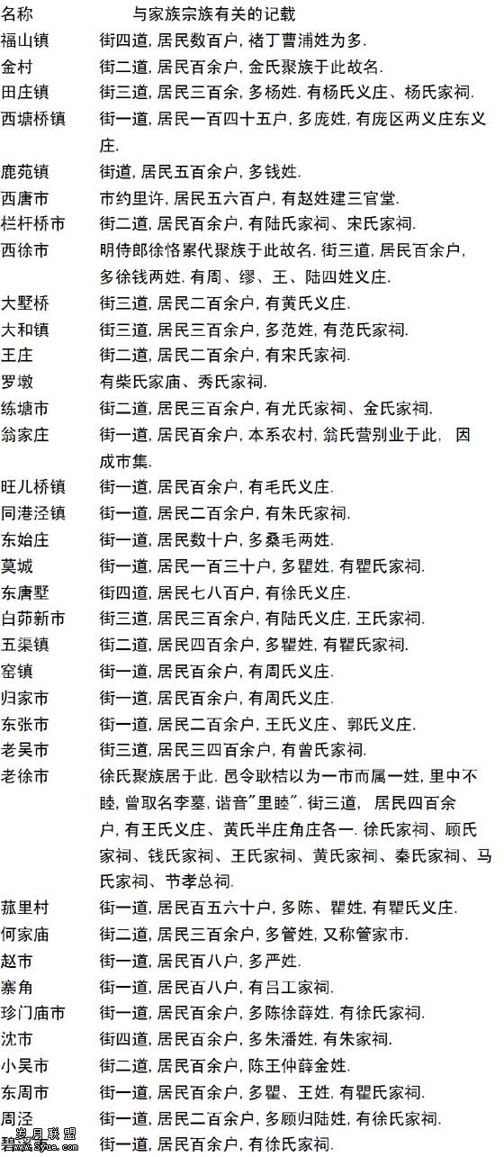 光绪《常昭合志》卷5《市镇志》载有76个市镇,其中43个占一半以上有与家族宗族有关的记载。这应该可以说明形成的市镇与家族宗族系列的天然关系,家族宗族系列在市镇中仍具有基础性实体社会组织的色彩。