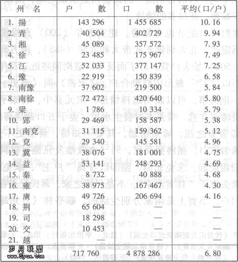 然而《宋書·地理志》全國總平均户口數已經不低,個别州郡户口平均數,七口以上所在多有,青州幾達十口,揚州超過十口,[53]這些都不是周朗所描述的家庭結構能完全解答的,須從别的角度來推敲。
