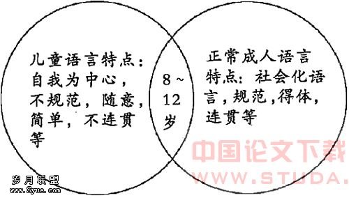 上图所示儿童语言向正常的成人语言过渡的年龄为8~12岁,这时语言发展虽然已处在关键期的末期,但在语言关键期末期进行规范的口语交际教学,是一种有意识的、有选择的行为。这一阶段的与学习能更有效、更深入地促进学龄儿童的口语进一步规范化。如果错过了这个阶段,再训练学生的规范的口语表达能力,就很难有效果。各地先后出现的“狼孩”、“熊孩”、“羊孩”、“猪孩”都是证明。