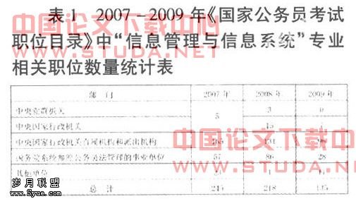 通过对2007年、2008年、2009年的《国家公务员职位目录》中可以查到要求专业为“信息管理”或“信息系统”或“信息管理与信息系统”的职位数量如表1所示。