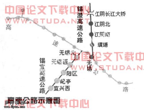 课件中文字字体字形多样,字距字向多变。很多老师在制作课件时,文字标注大多数情况下都是采取逐个字符注记的办法,十分费时。如在某个公路示意图中,道路路名的注记总是一个一个输入,相当麻烦。而在CorelDraw12中,整个名称以字符串的形式一次输入,执行“使文本适合路径”命令就可以沿着道路或河流自动注记,且注记会随着道路或河流的方向变化而自动改变其文字方向,同时也具有字距调整、字体变形等功能,极大地方便了地图的文字注记。下图为某高速公路示意图注记举例。