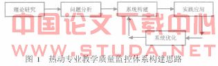 综上所述,有必要在建立健全教学质量监控体系方面进行一些有益的研究和探索。特别是2006年教育部专家组对我校开展了本科教学评估,虽然我们取得了令人满意的成果,但还是存在许多不足,我们应该以评估为契机,认真做好以评促建工作,结合质量工程建设,努力构建具有我院专业特色的高等教育质量监控和保障体系,确实提高管理水平和教学质量,保障人才培养目标的实现。 (三)如何构建热动专业教学质量监控体系