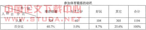 学生对体育锻炼的正确态度,是关系到学生能否坚持参加余暇体育的一个重要方面。结果表明,1/3的学生对课后体育锻炼持积极态度,近2/3的学生的态度一般。