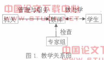 教学质量评估是收集与教学相关的各种信息,经过综合对教学质量给出恰当的评价,目的是为了提高教学水平。在教学活动当中,教师、学生、专家组、学校机关形成如图1的关系:机关管理教师,对教师授课质量给出终结性评价,同时要为教学提供相应的教室、器材(如:机,投影仪等);专家组成员根据学校机关提供的课程表和评价指标对教师授课进行听查课检查,并对被查教师的授课质量给出形成性评价;学生在老师的讲授和指导下,进行知识和思维能力的学习。也就是教学质量不仅仅是由教师个体决定的,它要受到学校机关、专家组、学生间的共同影响。