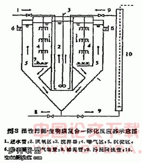 (3)使用SCMT型自旋传质填料生物反应器处理城市污水,可以在停留时间为1h,气水比为4:1的情况下,出水水质达到《城镇污水处理厂污染物排放标准(GB18918-2002)》中规定的二级标准。 3、活性污泥一生物膜一体化反应器: