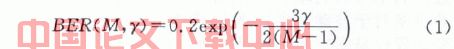 需要注意的是在M>4和BER<10-2时,近似BER是精确误码率的上限。在接下来的分析中,我们将会经常用到这个近似式,这是由于便于把M-QAM调制后的信道容量表示为载干比CNR和误码率BER。
