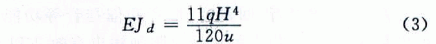 结构的弹性等效侧向刚度,可按近似按倒三角形分布载荷作用下结构顶点位移相等的原则,将结构的侧向刚度折算为竖向悬臂受弯构件的等效侧向刚度。即: