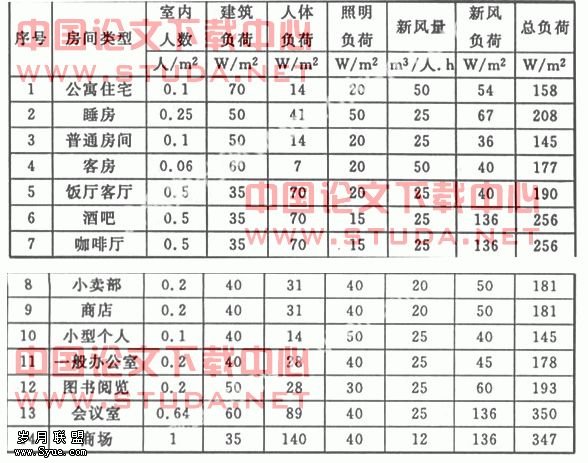 (1)部分场所空调冷负荷的估算方法: