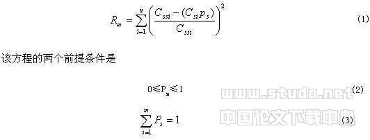 式中Res为线性方程的残差平方和,Cssi为泥沙样品中示踪特性i的浓度,Csi为s源地示踪特性i的浓度,P?s为s源地的相对贡献率。?