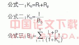 上述三个公式中,公式一显然指的是债权投资人要求的报酬率;公式二的分子是债权投资人得到的年利息(年收益),分母是投资额,Kb是投资收益率,但该公式没有考虑资金的时间价值;公式三中的Kb其实质是投资方案的内含报酬率,因为B0是债权人进行债权投资时的现金流出的现值,公式右边则是债权人将来的现金流入的现值,此公式中的Kb即是债权投资人进行一项投资时净现值(NPV)为零的折现率,也就是投资方案的内含报酬率IRR。